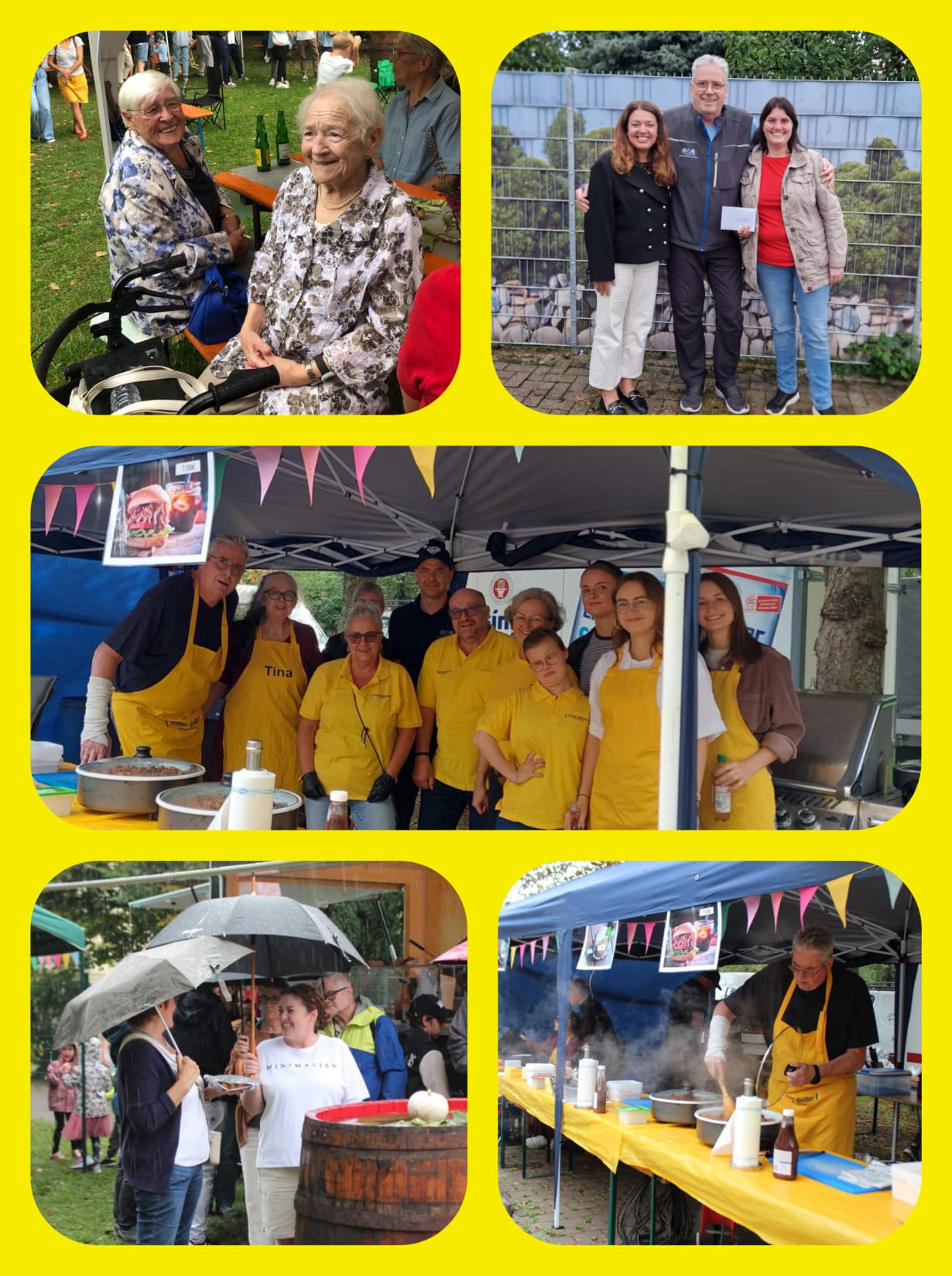 Der Kontakt mit den Machern der Grünen Dorfmitte entstand bei der Eröffnung am 27.06.2025.Im Laufe der Unterhaltung und der Nachfrage „was braucht Ihr jetzt noch am dringendsten? Kamen wir schnell auf die teilweise Verpflegung am Herbstfest. Durch das DLRG-Freibadfest 2024 geschult, schlugen wir Pulled-Pork-Burger und Ofenkartoffeln mit Sour-Creme vor. Gesagt, getan. So stand das Koch-Team der FW am 21. September mit 2 Zelten, 2 Gasgrills und 8 Helfern bereit, um 500 Burger und 150 Kartoffeln an die Besucherinnen und Besucher zu bringen. Zu Anfang lief der Verkauf kontinuierlich an und steigerte sich bis zum Einsatz des Regens. Obwohl nicht alle Portionen verkauft wurden, konnten die FW anschließend einen beträchtlichen Betrag in die Spendenkasse der Grünen Dorfmitte einzahlen.